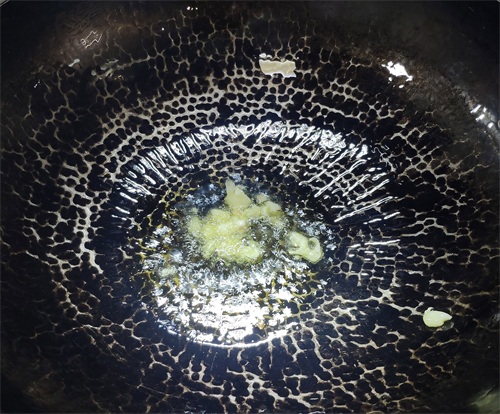 2,开好油锅放下蒜米爆香: