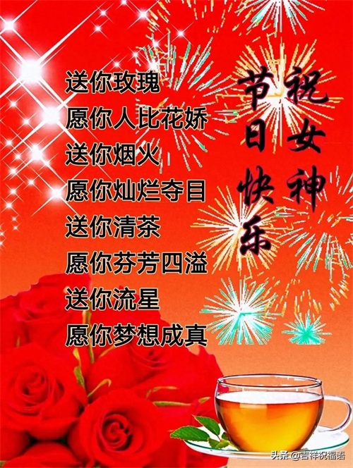 日春光明媚,女生召开大会。早已不是旧社会,姐妹们有地位。家庭事业兼顾,智慧美貌一身。作为其中一位祝你:女生节快乐,收获更多的美!