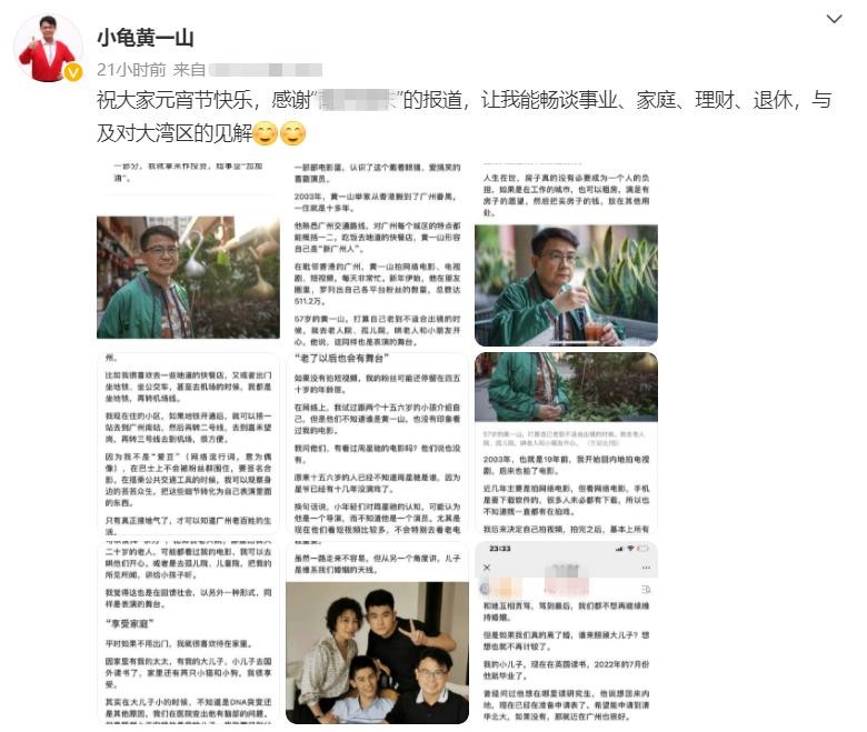 2月15日,知名男星黄一山在个人社交账号上转发了一则关于自己的采访,专访中他分享了移居内地19年的生活。