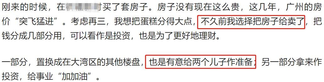 不过,在考虑再三后,他将房子卖掉套现了。他将钱分成几部分,一部分给孩子做准备,一部分用来投资自己的事业。