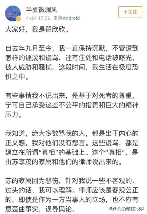 苏享茂哥哥发文截图