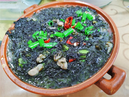 我和小君先到六鳌,古城边上找了个客栈住。所谓古城,没多少留存了。半新不旧的房子围着个鳌武庙,外围都是嘈杂的街市。街上海鲜馆子实惠得很,一斤盐焗白对虾竟然39元!什么概念?超市买一斤生虾也三十多元呢。我们还点了一份头水紫菜海蛎煲和一份青菜。常在海边的人都知道,紫菜要吃头水的。渔民养紫菜的时候都是分批次采割,第一批叫头水,后面的叫二水、三水等等。头水紫菜的产量低,营养价值最高,食用口感最佳。