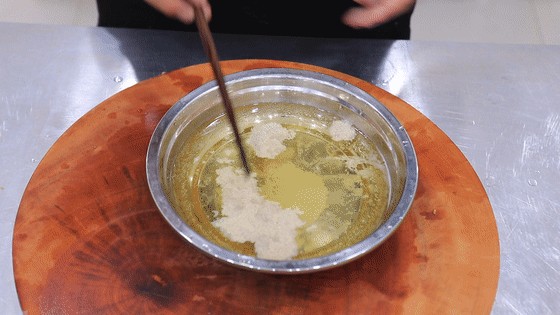 锅内烧油、油温六成热时,把鸡蛋在淀粉水中先滚一圈,再放入锅中。保持小火慢炸,把鸡蛋定型以后,用笊篱捞起来继续炸,以免糊底。等鸡蛋表面炸酥、炸成金黄色,就可以了。