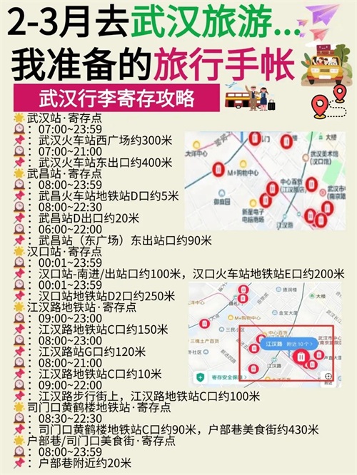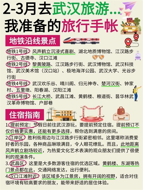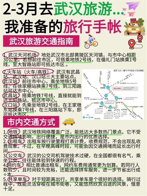 2. 火车站:武昌站、汉口站、武汉站三大枢纽,地铁交通便捷