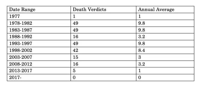 就拿上述研究涉及的路易斯安那州来说,上图显示了不同历史时期该州每年平均死刑判决数量,可以看到,在 2008-2012 年,平均每年只有 3.2 人被打入死囚牢,而这一数字在 2013-2017 年下降到一个。而针对凤毛麟角的个位数死刑犯,政府还需要专门设置维持更高标准的关押场所、将死刑犯和普通犯人分开管理、为此培训狱警和法警、采购维持执行设施、购置并保存危险的药剂,这都在推高平均执行成本。(倘若遇上类似采购一个咖啡杯需要几百美元的史密斯专员式操作,数额就更是可观了。)
