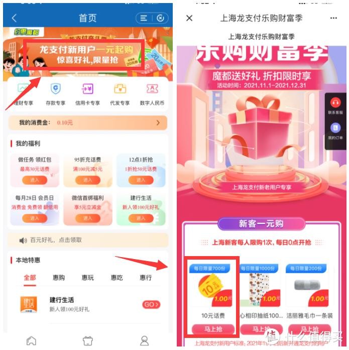 建设银行首页, 约惠魔都, 其他城市也有相应的差不多的活动页面。