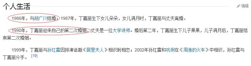 并且,我们看丁嘉丽的两次婚姻,分别为1986年,和1990年,且“丈夫去拍戏了”,说明出轨是第一次婚姻时发生的。