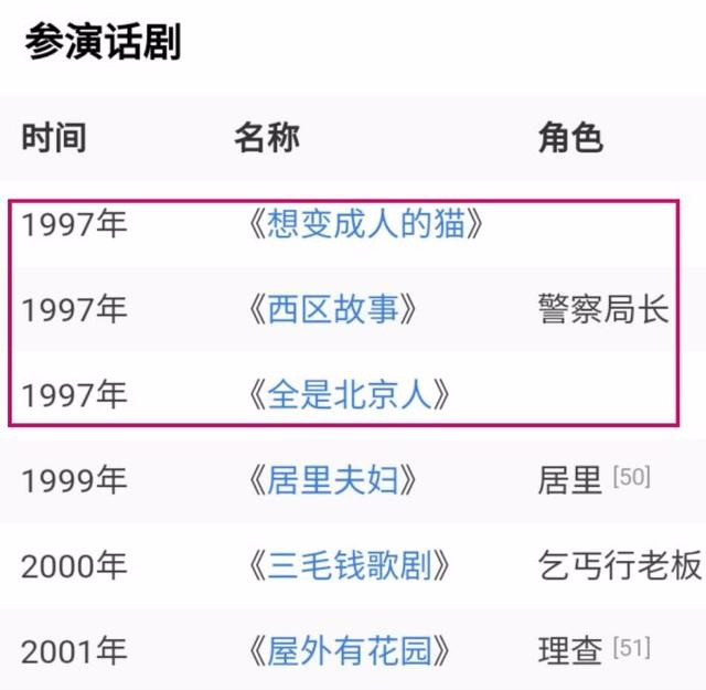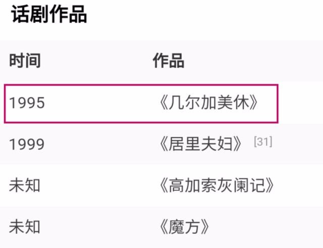 在这里插入一句,孙红雷话剧界里的崛起,也是和丁嘉丽没关系的,丁嘉丽在《居里夫人》前,只在1995年演出了一部话剧。