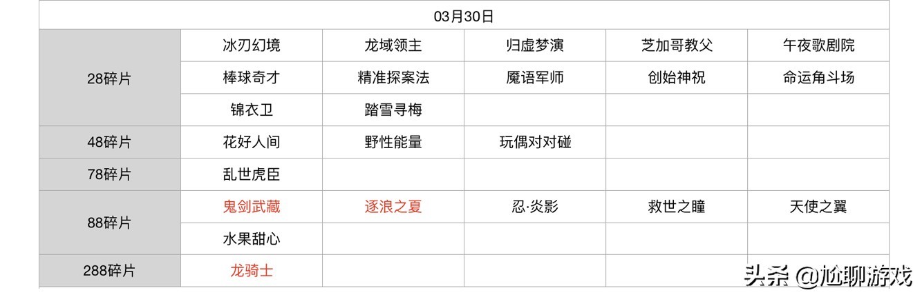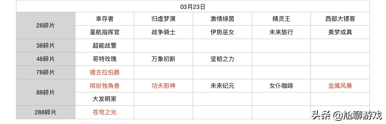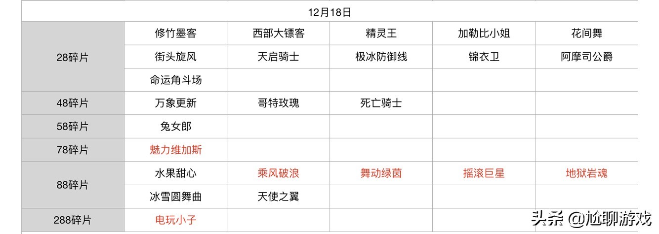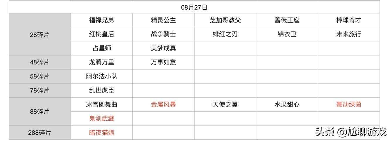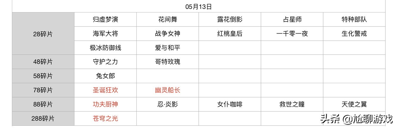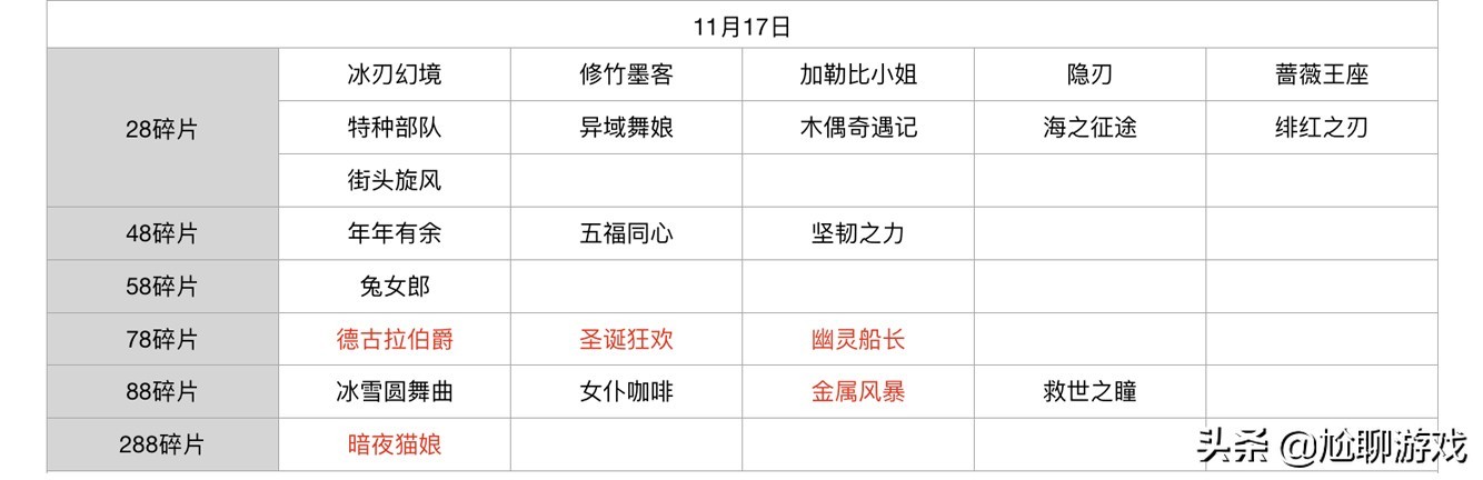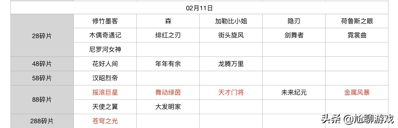 共汇总碎片商店更新记录100次,囊括上架皮肤133款。