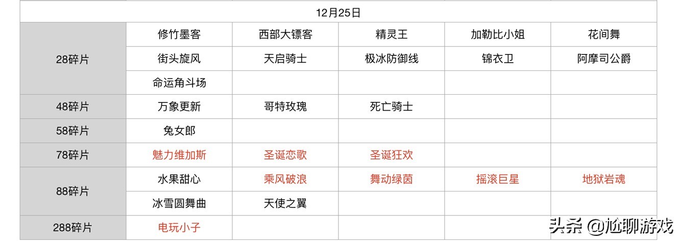 史诗皮肤:圣诞狂欢、圣诞恋歌、幽灵船长、地狱岩魂、暗夜猫娘