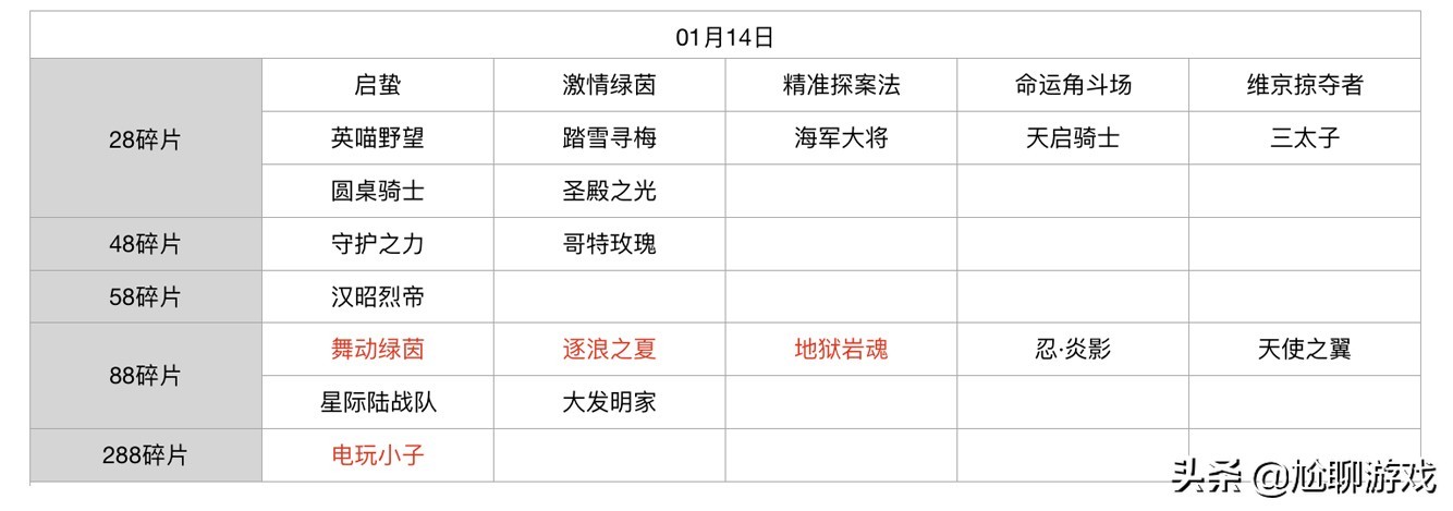 ps:碎片商店没有固定更新周期,通常来说,新英雄上架/节日活动/版本更新时,碎片商店也会随之轮换。