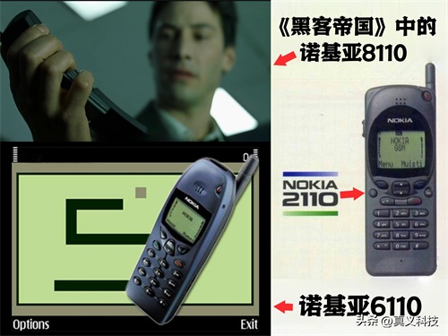 后面的1996年,曾经在未来《黑客帝国》电影中出现的“香蕉手机”诺基亚8110也正式诞生,其最让人印象深刻的,除了优美弧线机身外就是那个拥有麦克风功能的下滑盖了。