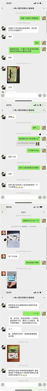 他和其他被资助孩子的家长共同有一个群聊,大家时常联络,分享孩子们的成长点滴。