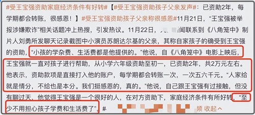 他透露,在王宝强的资助下,家庭的经济条件有所好转,至少不用担心孩子的学费和生活费了。