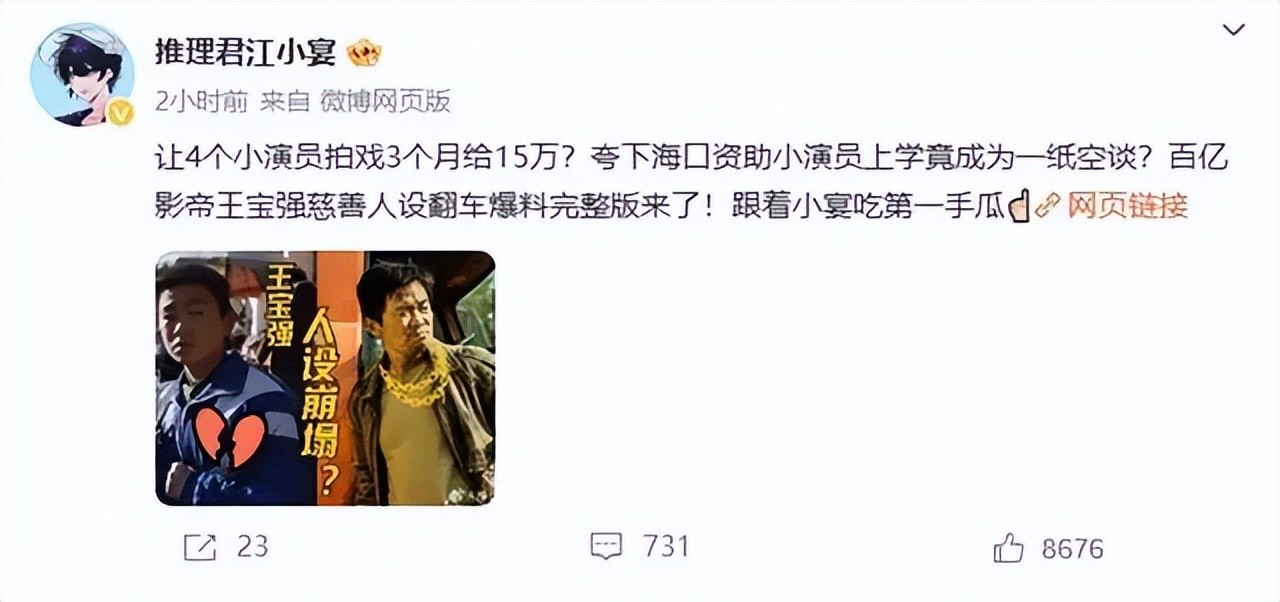 但就在这时,有狗仔江小宴跳出来指责宝强哥虚假慈善。