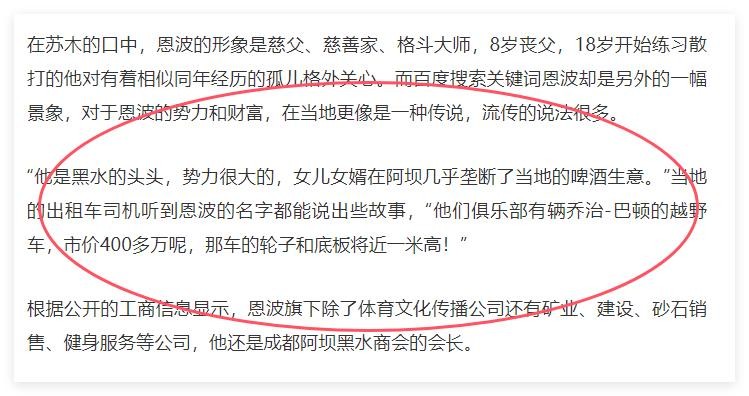 有知情人透露,恩波在成都是个“狠角色”,以前替人要债,本地搞工程的人都认识他,也没人敢惹。