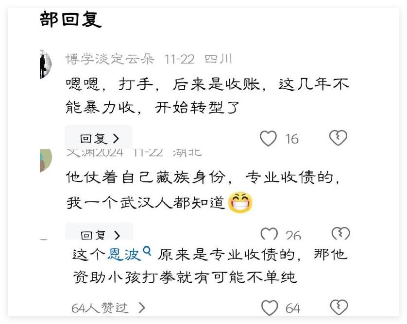 不少网友呼吁,当地应该好好查一查恩波以前到底干了什么,看看他是不是真的在“做慈善”。