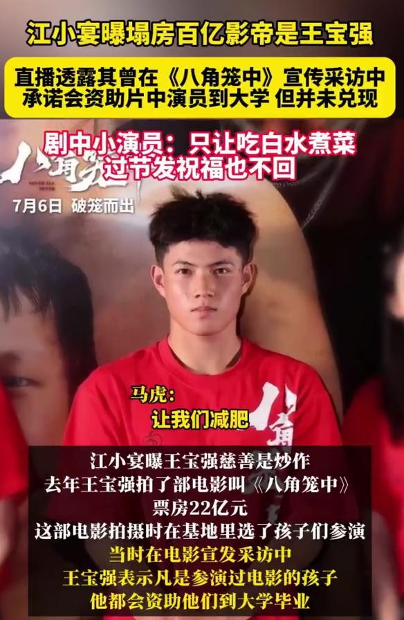 知名娱记超能摄影阳阳和江小宴的爆料王宝强在电影《八角笼中》涉嫌慈善欺诈,人设崩塌,还拉来了电影中的小演员作为“证人”,誓要将王宝强纯良、实在、真诚老实人的形象彻底推翻。