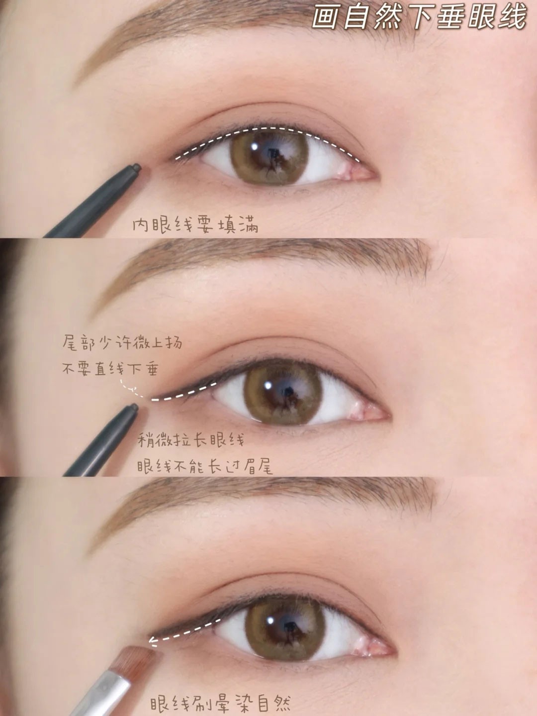 自然下垂眼线画法:
