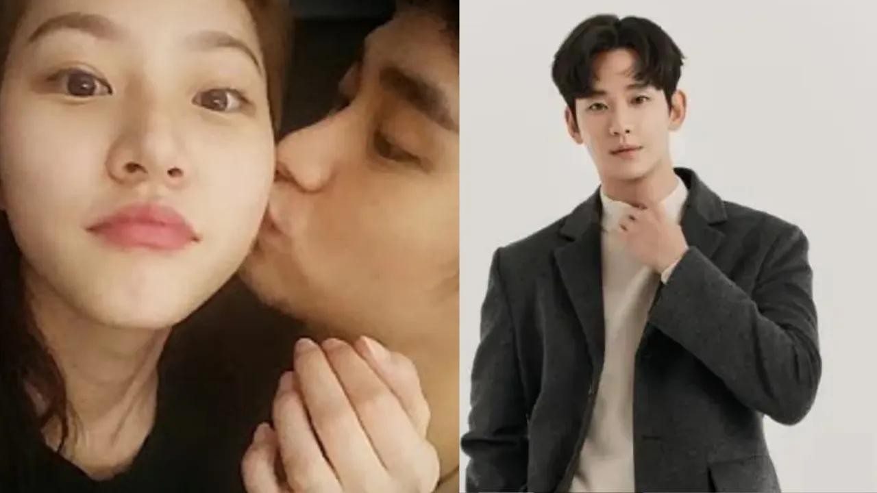 第三张照片中,亲吻持续着,两人的手也不自觉地抓紧对方。金秀贤有力的大手握住金赛纶的肩膀,仿佛要将她融入自己的生命。金赛纶则双手轻轻搭在金秀贤的胸前,这样的肢体语言更增添了画面的甜蜜与深情。