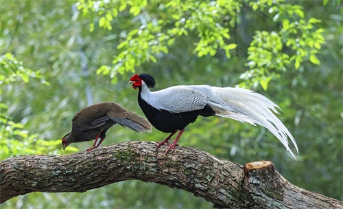 白鹇(学名:Lophura nycthemera),又称白雉、银雉,是国家二级野生保护动物。它们主要分布在中国南部、东南亚及印度支那半岛的山区森林中。白鹇雄鸟体态优雅,羽毛以白色为主,翅膀和尾部有黑色和蓝色的光泽,头顶有长而直立的黑色羽冠,显得格外醒目。雌鸟则以棕褐色为主,色彩较为朴素。