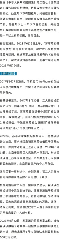 翟欣欣敲诈勒索案一审落幕:正义虽迟但到 苏享茂家属称其认罪认罚