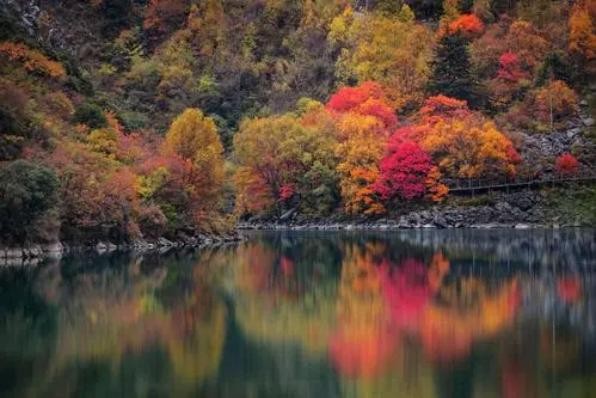 红日西沉,残留的几抹晚霞,映照着远处孤寂的村庄。烟轻袅袅,几只乌鸦在佝偻的老树上栖息着,远处,一只大雁掠过长空飞向天际。环首四顾,只见山青,水绿,草白,花黄,一抹红叶分外妖娆,好一幅色彩绚丽的秋景图啊!