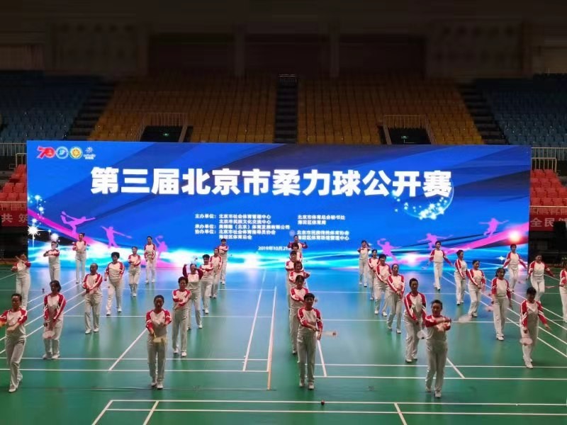 今天,第三届北京市柔力球公开赛在海淀体育馆隆重举行。大赛设花式和网式两大项,分为花式规定套路、集体自编套路、双人自编套路、单人自编套路及网式男子单打、女子单打6个小项;分设高校组、中小学组、社会组三大组别。本届大赛本着“政府部门引导、基层单位组织、广大群众参与”的原则,采取面向社会、公开免费报名的方式,吸引了来自我市各社区、学校、协会、俱乐部等60支队伍800余名柔力球爱好者报名参赛。
