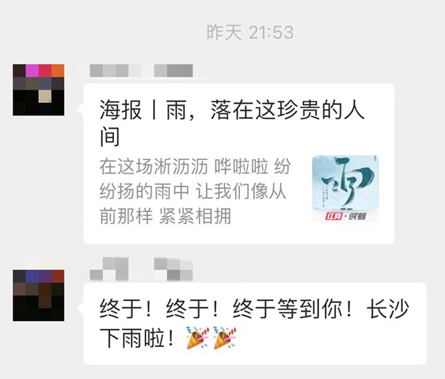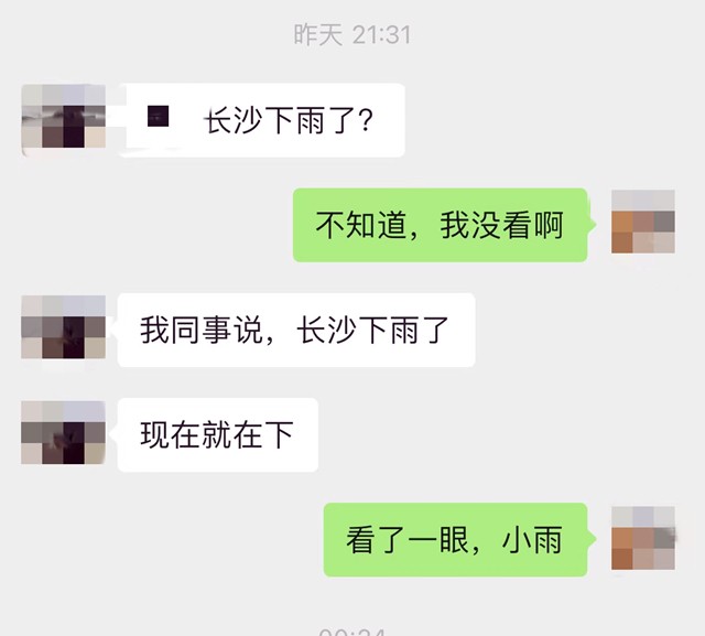 甚至朋友也特意询问长沙下雨的事儿