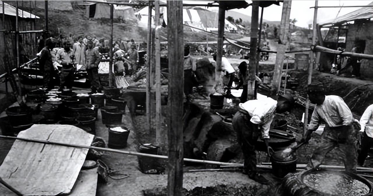 日本投降后,大量的俘虏急需处置。图为南京龙潭的日本战犯集中营,一组日本俘虏正在准备生火煮饭。