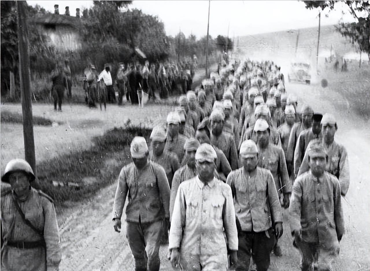 照片:日本人在1945年八月被苏联俘虏。日本关东军在苏联红军进军东北后崩溃,大批日本军人被苏联的红军所俘获。