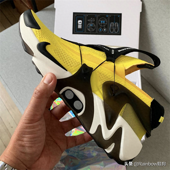 单说外观,从鞋款外的支撑方式上可以隐约看到华莱士的影子,但是鞋款本身科技感十足,细节颇为诱人。加上鞋底处和adapt BB一样构造的电子LED灯更是让鞋款充斥着满满的科技感和神秘感。鞋款采用了和BB一样的自动系鞋带系统,通过Nike自家的“Nike Adapt”这款app即可使用此功能。