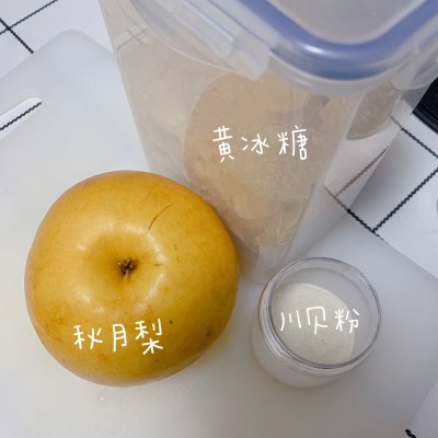 秋月梨/雪花梨 1个 川贝粉 5克 黄冰糖 5克( 自行调整 ) 牙签 2根