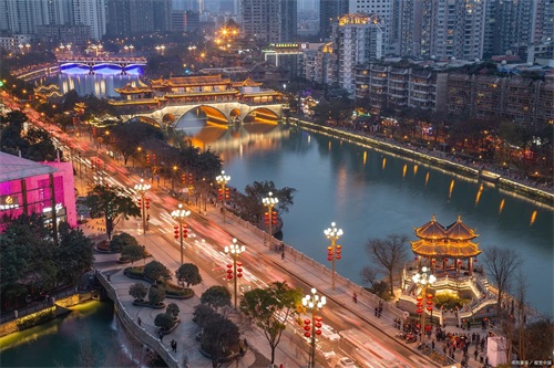 最后,你可以在九眼桥欣赏到美丽的夜景。九眼桥是成都市区内的一座著名古桥,也是全国重点文物保护单位之一。在这里你可以欣赏到成都市区的美景,也可以在桥上拍摄照片留念。九眼桥沿江还有许多酒吧可以坐下来喝喝小酒听驻场、对面兰桂坊还有蹦迪。