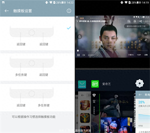 分布在home 键左右两侧的COOL—PAD触摸板配合着手势可以实现八大功能:多任务、智能Dock、单击返回、快速截屏、准确截屏、分屏、后台清理以及文字放大。这便需要用户在使用过程中牢记这几种功能的操作手势才能将COOL—PAD触摸板的发挥出其应有的效果。