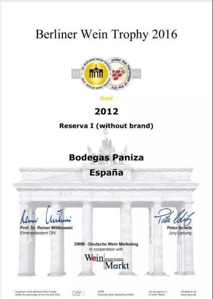 12年帕尼萨酒标上的双金奖,都来自国际上赫赫有名的国际性葡萄酒大赛——柏林、加拿大葡萄酒大赛,这两个奖项的含金量也是葡萄酒大赛届的个中翘楚