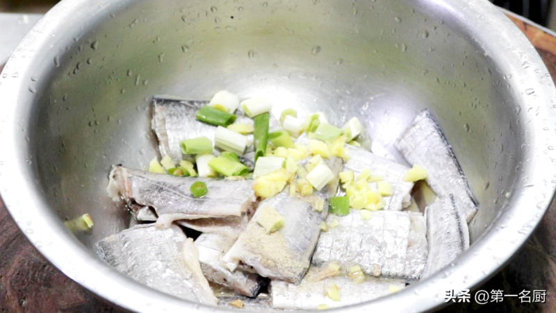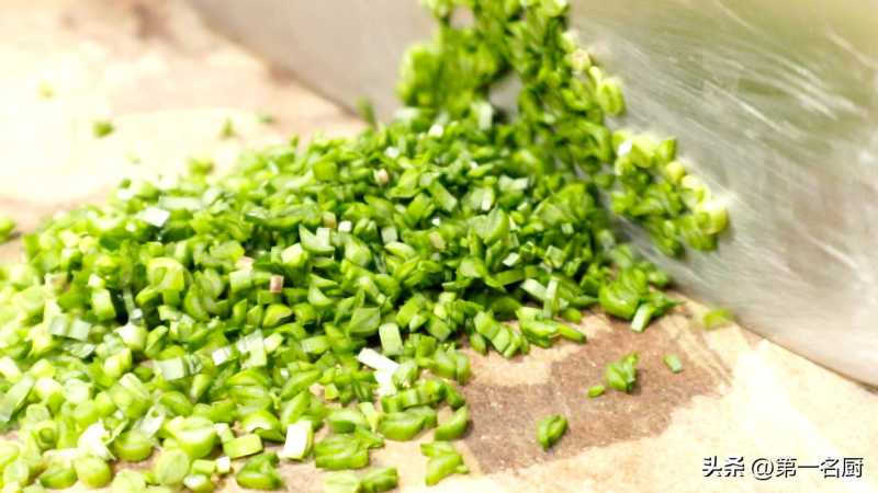 4.泡好的粉丝一小把,用刀剁碎后放入盆中,盆里加入少许