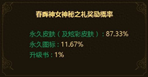 已经抽过的玩家就不要再花钱去砸了,没抽的可以考虑春晖女神的神秘礼物活动,永久皮肤概率还是挺大的。