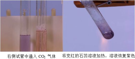 实验结论:二氧化碳能与水反应生成碳酸:H2O+CO2 =H2CO3;
