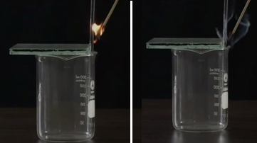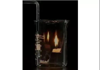 实验现象:下 层阶梯上的蜡烛火焰先熄灭,上层的后熄灭。