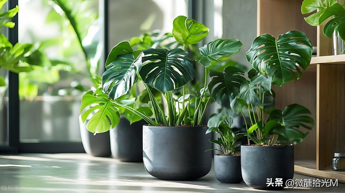 美化家居效果:龟背竹的叶片大而独特,非常适合放在客厅的角落里,作为家居中的视觉焦点。