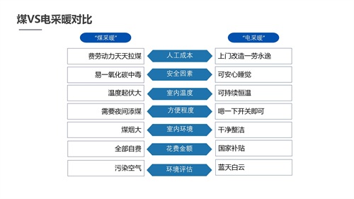 电采暖作为一种舒适的采暖方式,被国家及各地政府认定为有利于环境改善,对治理城市空气污染、提高居民生活质量有显著的作用。本着国家关于可再生资源持续发展的原则,国家和地方各部门相继出台政策共同推进北方地区清洁能源取暖工作,加快提高清洁供暖比重。从长远看,清洁能源取暖将会是我国能源发展中的一个重要发展任务。