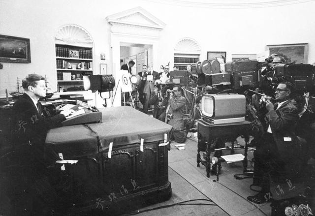 美国方面在准备战争的同时也没放弃外交努力:一面在联合国谴责苏联,一面争取美洲国家支持。1962年10月22日晚上7点肯尼迪通过广播讲话向美国和全世界通告了苏联在古巴部署核导弹的事实。美国随即宣布武装封锁古巴,同时要求苏联在联合国的监督下撤走已部署在古巴的进攻性武器。与此同时美国战略空军司令部宣布全军进入三级战斗戒备。