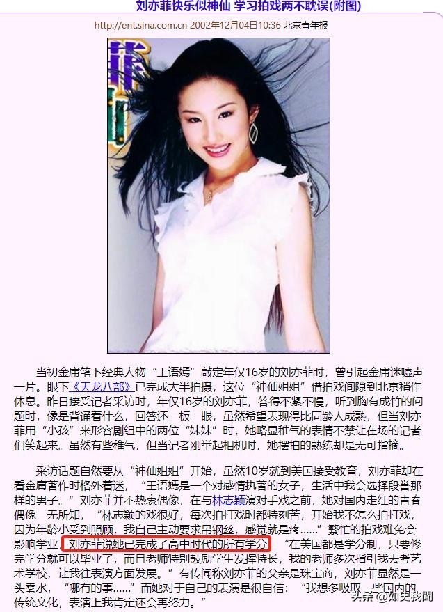 刘亦菲在美国提前完成了高中学业,转而回国发展。