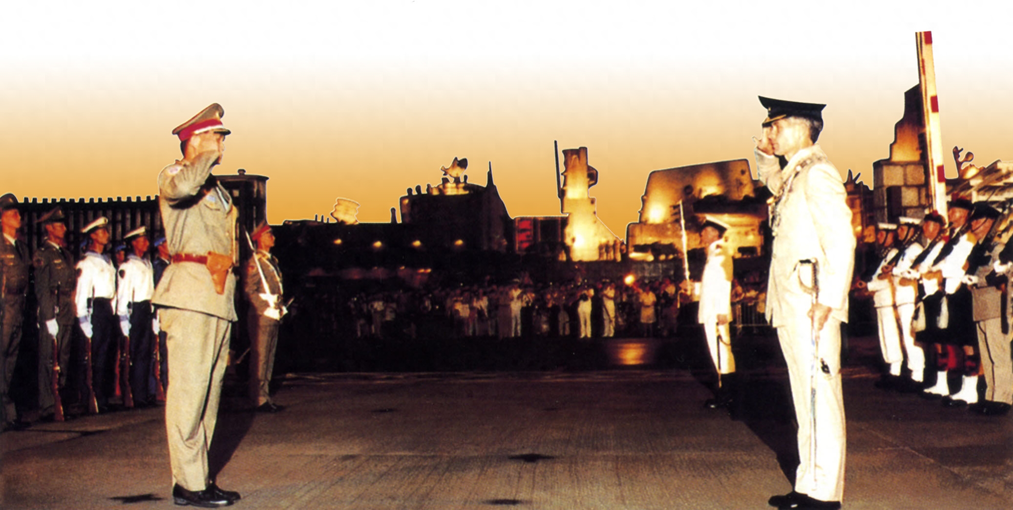 当晚23时58分,一位英军中校脚步略显沉重地朝着我军走来,当他走到我军中校谭善爱面前时,才顿住了脚步,伸手敬礼报告道,