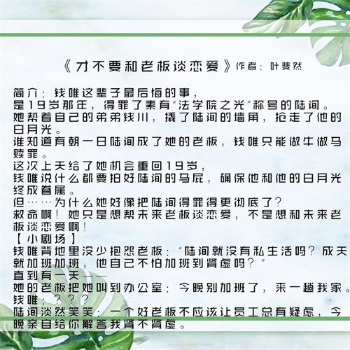 3、《才不要和老板谈恋爱》作者:叶斐然