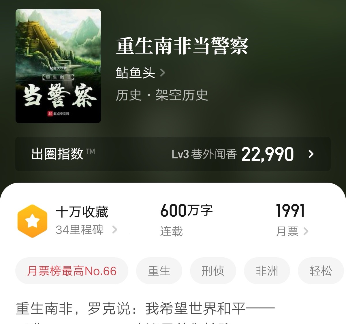 1、主角积极融入南非,靠着当时的霸主日不落帝国英国逐渐崛起,后移民清国人到南非发展。