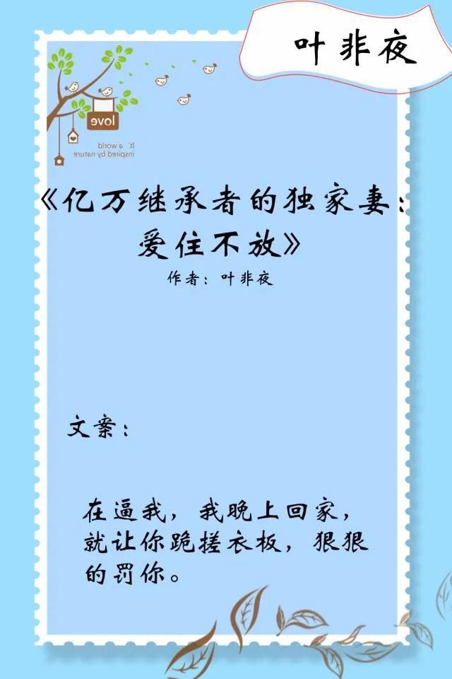 《亿万继承者的独家妻:爱住不放》作者:叶非夜