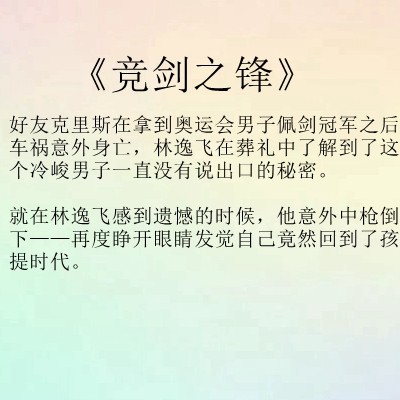 介绍:抛开爱情主线,这是一篇关于击剑的体育竞技文,里面同样介绍了很多关于击剑的知识。