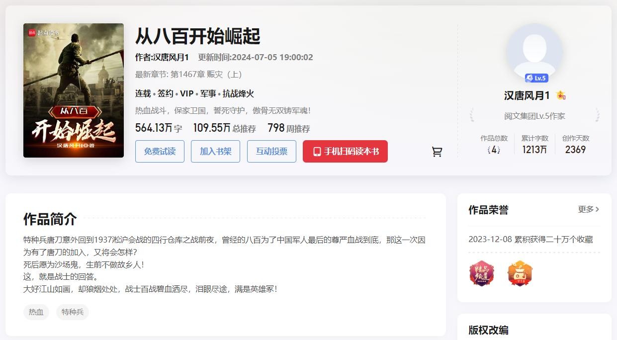 小说发布于2019年3月27日,到现在已经连载了5年4个月的额时间,总字数823万,连载至3504章。作者现在每隔几天才会更新2000字,不知道何时才能正常完结。